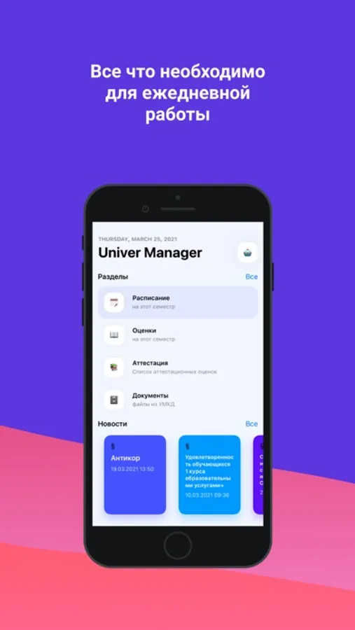 Приложение это отличный способ быть в курсе расписания, оценок, аттестации студента.