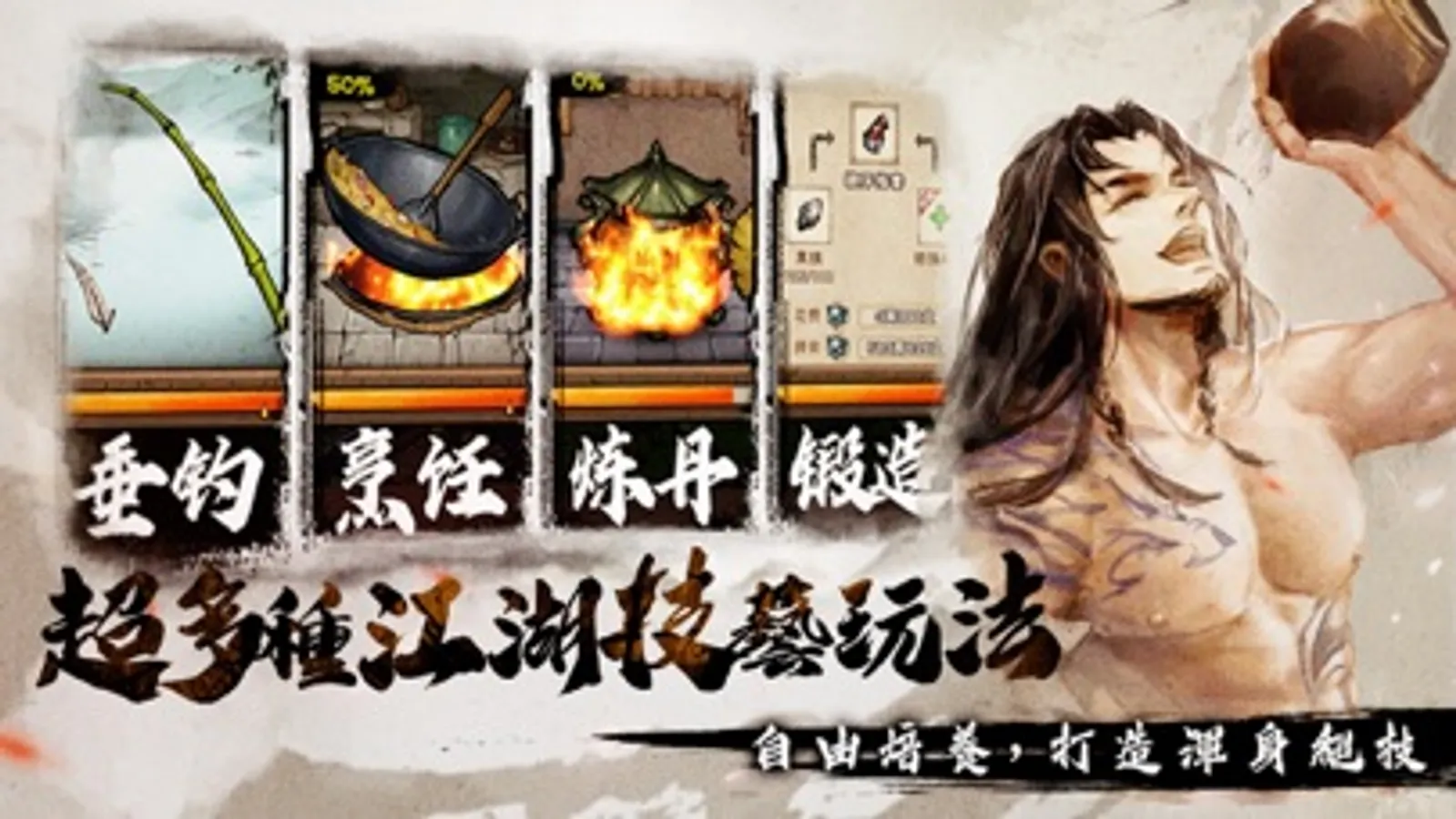 行走江湖者,必身懷絕技也。除了一身武藝,你還將學會各種日常技藝,釣魚酒藝煉丹庖丁鍛造所有你想學的古老技藝,這江湖都有!