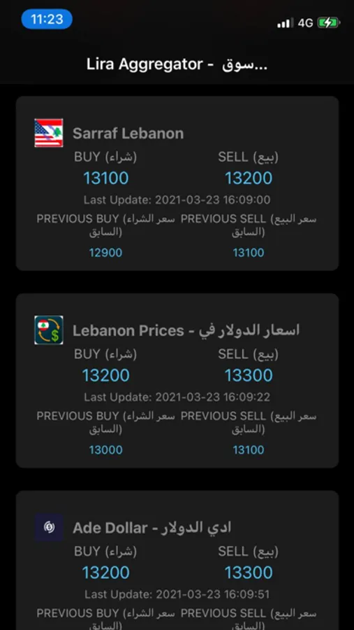LIRA Aggregator is an application to know the price of the dollar at exchangers in Lebanon, moment by moment. This application helps to solve this problem by checking and displaying all major platforms prices and their average.