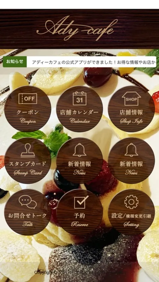 『Ady-café~アディーカフェ~』からのお知らせや会員様限定の通知情報が届きます。