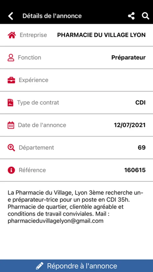 - Emploi et Transaction : toutes les offres pour les préparateurs (suivi des candidatures, ajout de favoris)