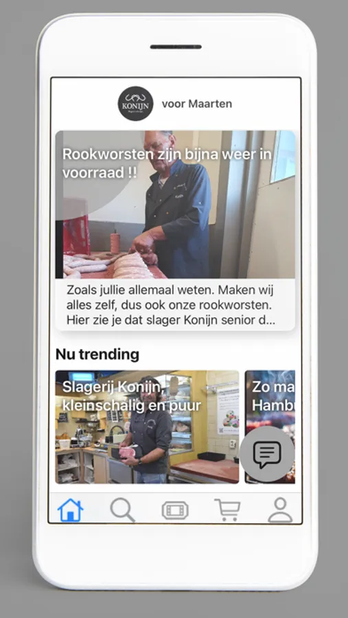 Als eerste op de hoogte van leuke acties en exclusieve aanbiedingen met de Slagerij Konijn app. Chat direct met ons als je een vraag hebt over een product of bereidingswijze en ontvang een persoonlijk berichtje als we iets leuks voor je hebben.