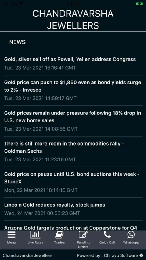 It also has the RATE ALERT facility to set the alerts at specific price and recieve notification when the the market price reaches the specified price level.
