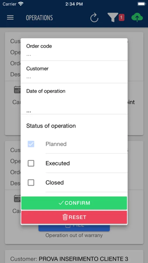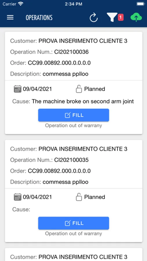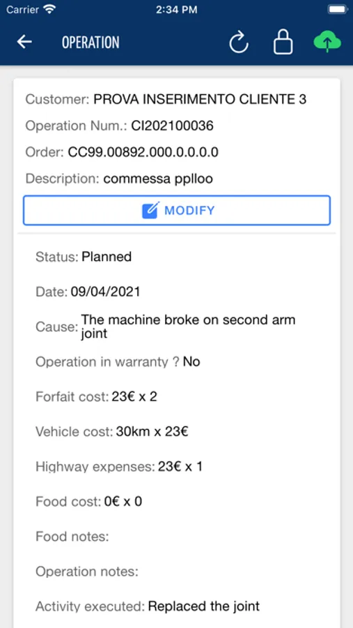 L'applicazione consente di specificare attività svolte dagli operatori e i ricambi usati, l'acquisizione della conferma da parte del cliente e la condivisione del rapportino di intervento.
