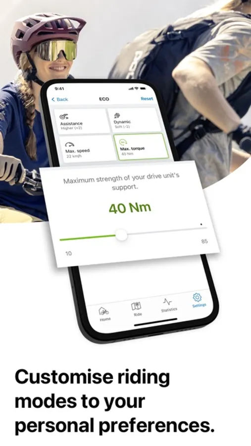 With the eBike Flow app, you can adjust the ECO, TOUR, SPORT and TURBO riding modes to perfectly suit you. For example, increase support in TOUR mode or reduce power consumption in TURBO - anything is possible. Make it your eBike.