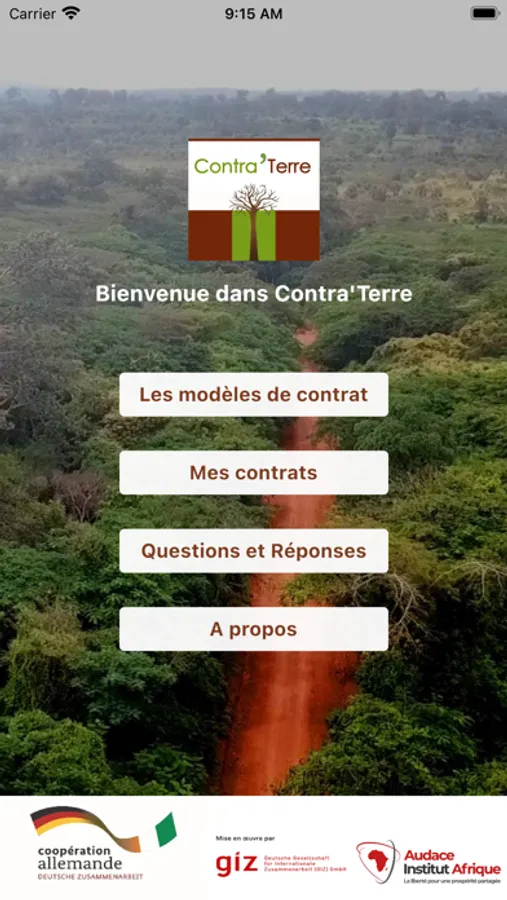 Contra’Terre est une application qui permet de télécharger ou de remplir, à partir de l’application Contrat’Terre, 10 modèles de contrats agraires actuellement reconnus en Côte d’Ivoire par l’Agence foncière rurale (AFOR). Ces contrats sont destinés à régir les relations entre un propriétaire (souvent appelé tuteur) et son exploitant agricole.