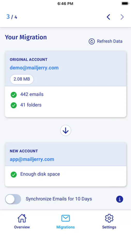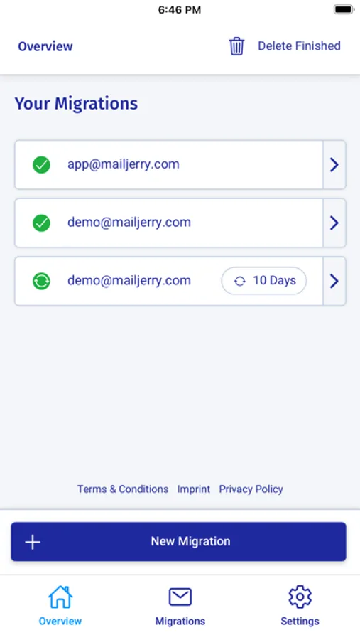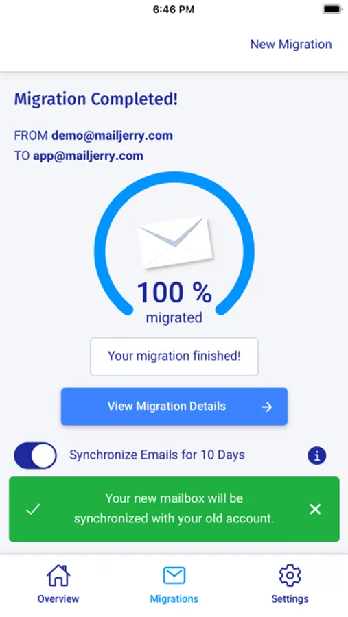 With the MailJerry app, you can easily migrate your emails to a new provider.
