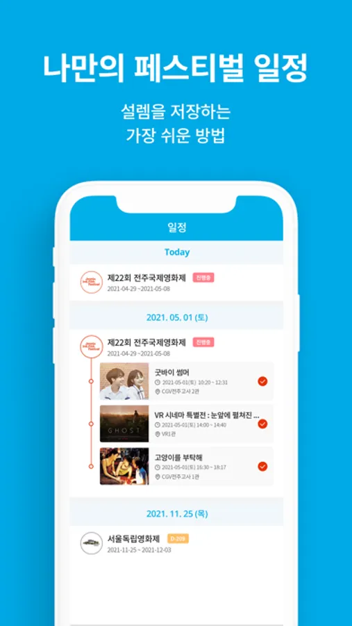 한 번의 터치로 나만의 페스티벌 일정을 만드세요.