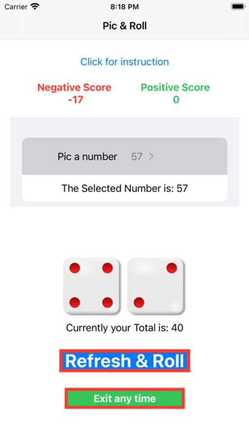 6. After 3 clicks on [Roll the Dice] the result of the 'current total number' will be compared