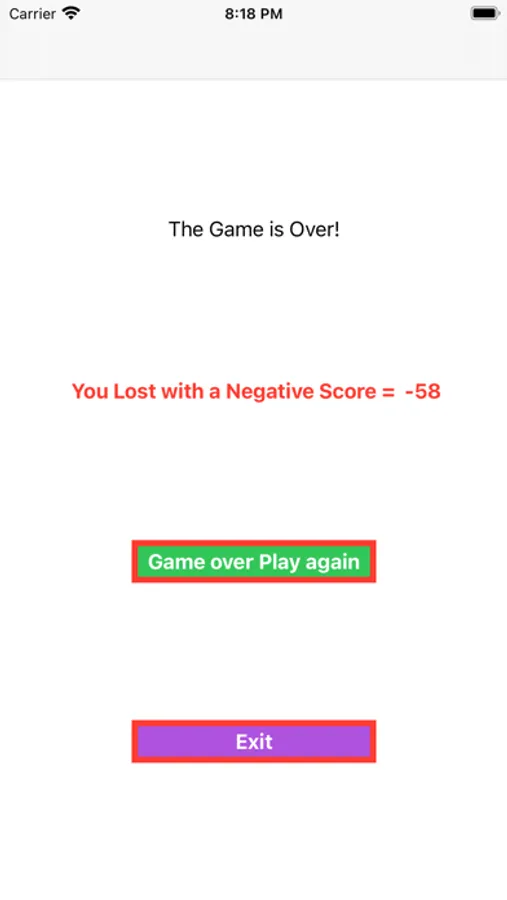 7. If the result of comparison is negative the red 'Negative Score' counter on the