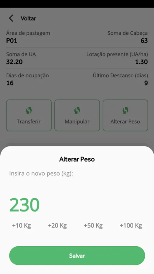 Os dados são diretamente enviados para o sistema da Gerente de Pastos. Você pode utilizar o aplicativo no meio do campo, mesmo sem conexão com a internet.