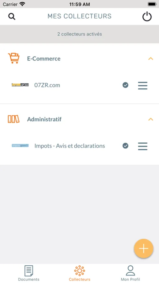 - gérer vos collecteurs pour connectez simplement vos organismes : sites e-commerce, téléphonie, impôts, banque, énergie… pour recevoir et sauvegarder automatiquement dans votre coffre-fort sécurisé les documents associés.