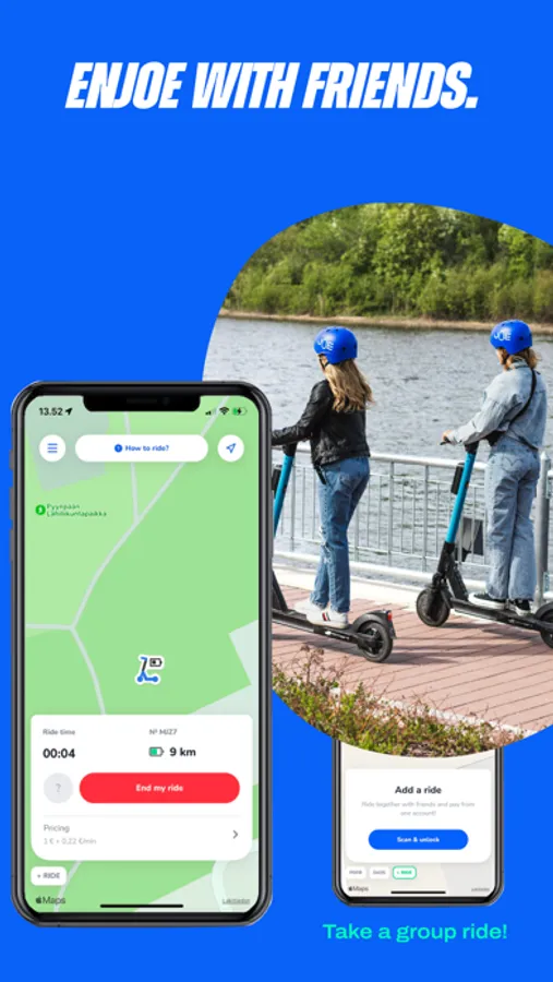 The Joe app is free; you only pay as you ride. Check the price in your city by tapping a scooter symbol in the Joe app.