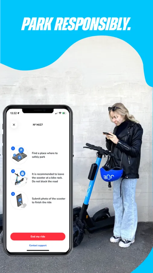 Download the Joe scooter app, step on a scooter and star your Joeride.