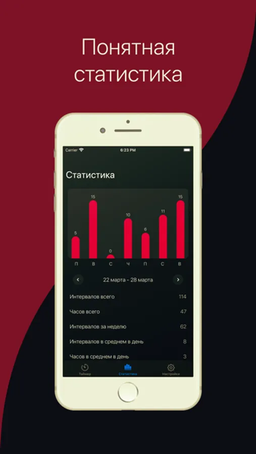 * статистика поможет следить за своими достижениями и плавно вырабатывать привычку к работе