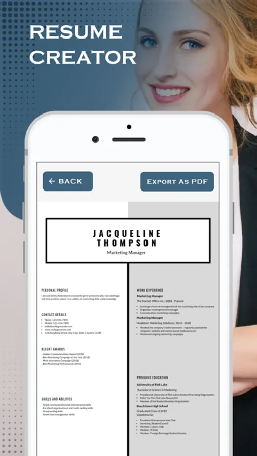 My Resume Creator App lets create simple, beautiful, and professional resumes in minutes. It is so simple, quick to create a great resume with a click. There is no step-by-step process to enter your information in the fields.