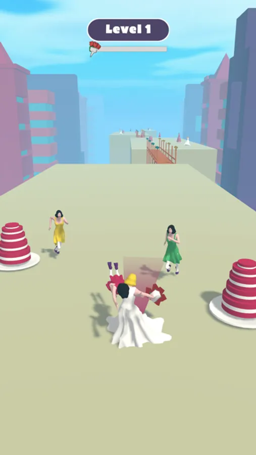 Pass the flower to bride and avoid getting tackled by bridesmaid!