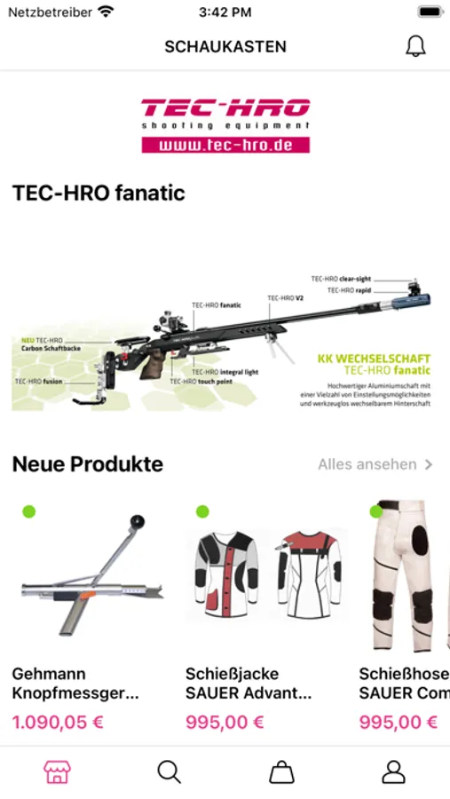 TEC-HRO Shooting Equipment GmbH & Co. KG hat es sich zum Ziel gesetzt durch technische Innovationen und Weiterentwicklungen, die sportlichen Leistungen im Sportschießen, selbst von Spitzenschützen, weiter voranzutreiben! Armin Rothmund selbst seit Jahren im nationalen und internationalen Schießsport aktiv ist/war (Nationalmannschaft bzw. Bundesliga), fließen neben großer Erfahrung auch jede Menge Begeisterung und Liebe zum Detail in die Entwicklung der Produkte mit ein. Um Interessenten sowie Kunden noch mehr Erlebnis mit der Marke TEC-HRO zu bieten ab sofort der Download des erfolgreichen online Angebots als App.