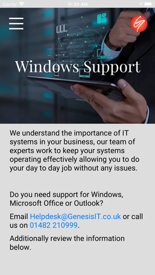 This app is designed to offer you and your business support. Keep up to date with any major known issues regarding common businesses technologies and any end of life for critical products.