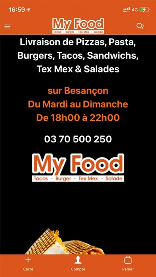 Commandez chez MY FOOD BESANÇON & faites-vous livrer ! Gagnez du temps, sans efforts, tout en ayant votre confort ! Nous vous offrons un large choix de produits frais, préparés avec amour et un savoir-faire d’exception ! Pizzas, tacos, burgers, sandwich, tex-mex… Nous en proposons pour tous les goûts et toutes les envies.
