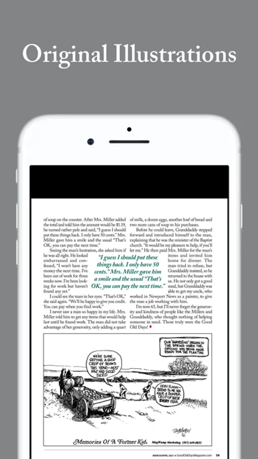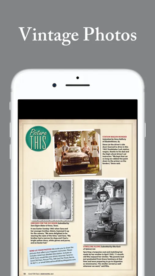 Good Old Days Magazine remembers the best of times from the ‘30s through the ‘50s, straight from the heart. Written by our readers, each new issue brings you authentic heart-warming stories and photos from a cross-section of America’s citizens, and includes their experiences, their laughs, their sorrows and much more! All are captured in a personal, nostalgic format.