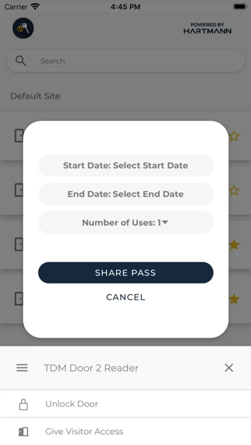 HC Key allows you to create, customize, and grant visitor access credentials directly in the application. Determine the time frame and amount of use for the credential then share this with the visitor. Visitors are not required to have the HC Key application installed to use their credentials. Administrators have the ability to allow or deny users from granting visitors access as well as revoking a visitor pass after it is issued.