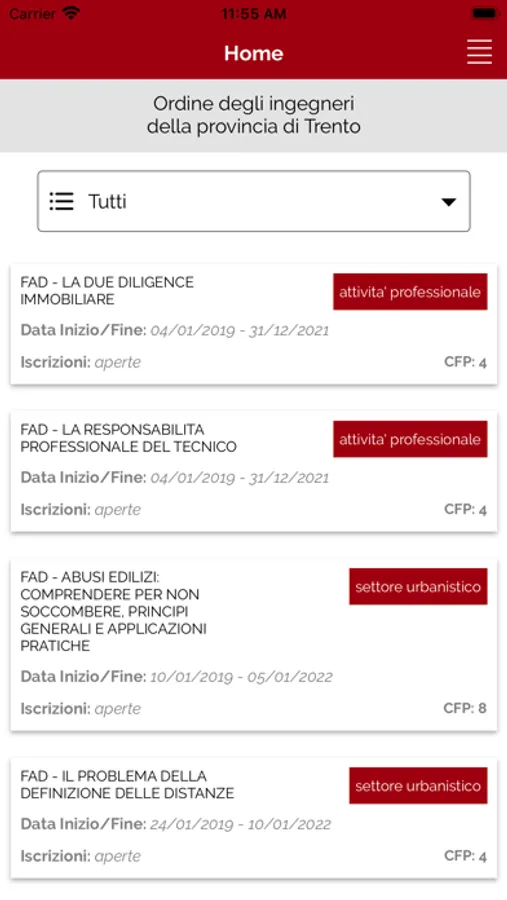 La app è dedicata all' Ordine degli Ingegneri della provincia di Trento. Permette di visualizzare le notizie dell'Ordine, consultare il calendario delle attività formative e gestire le proprie registrazioni ai corsi. La app può essere usata anche per presentare il codice necessario al rilevamento delle presenze alle attività formative.