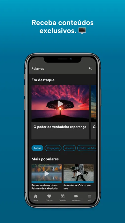 - Siga a agenda e fique por dentro de tudo que acontece na igreja, inscreva-se em eventos e tenha seus ingressos sempre com você.