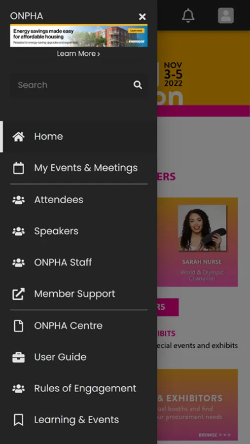ONPHA Events platform for regional meetings and conferences for the Ontario Non-Profit Housing Association.