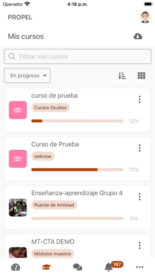 ¡Continúa tu capacitación en todo momento! Accede a todo el contenido de tu plataforma PROPEL. Consulta el contenido de tus cursos, actividades, calificaciones, participantes, calendario, entre otros.