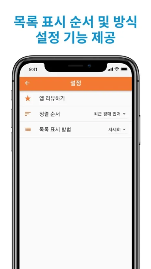 - 경매 목록 표시 순서를 설정할 수 있습니다. ('최근 경매 먼저' 또는 '과거 경매 먼저')