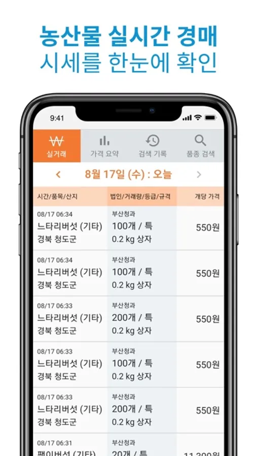 전국 도매 시장에서의 농산물 경매 시세를 확인하는 어플리케이션