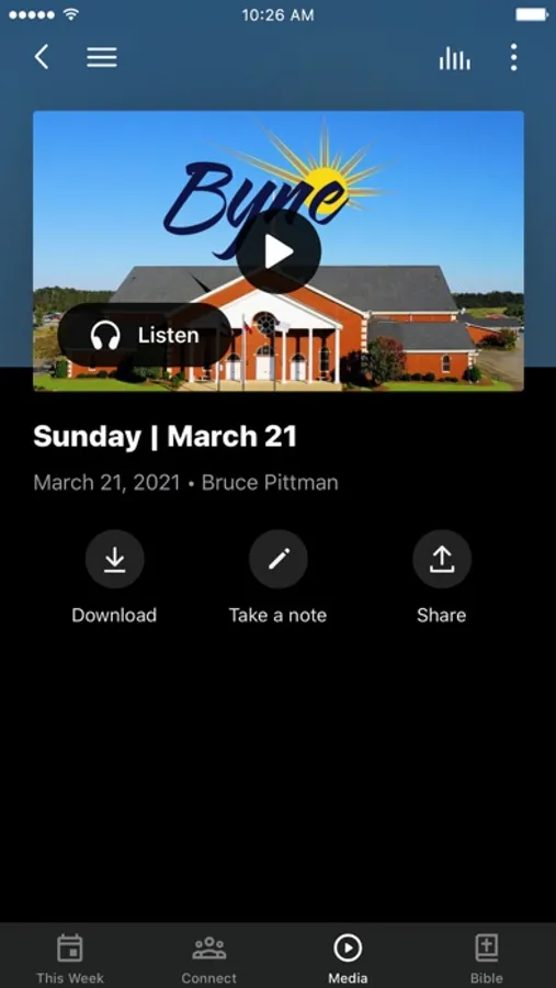 This app will help you stay connected with the day-to-day life of our church. With this app you can: watch or listen to past messages; stay up to date with push notifications; share your favorite messages via Twitter, Facebook, or email; and download messages for offline listening.
