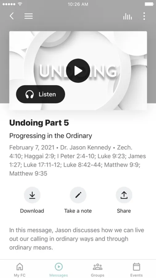 - Watch or listen to past messages