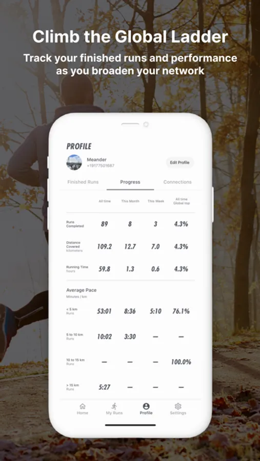 Set up and join social RunRooms around the world. Compete on leaderboards with peer rankings. Track your progress, statistics, and connections.
