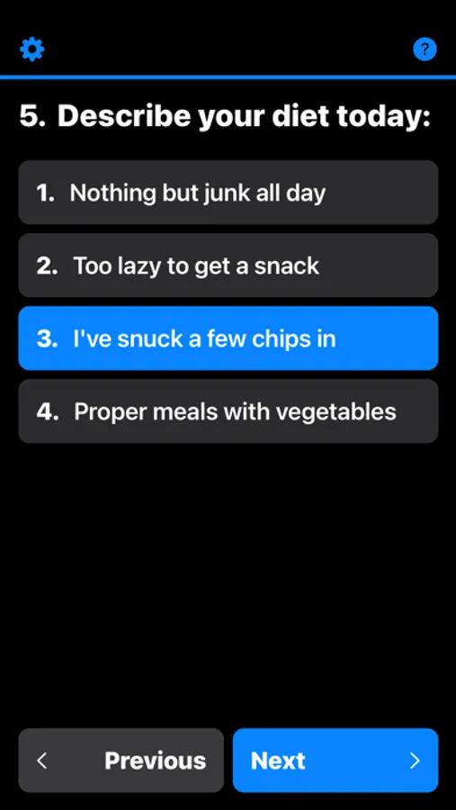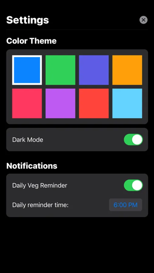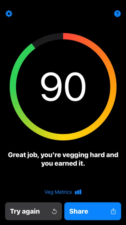 The Veg-O-Meter also provides metrics based on historical veg scores that can help determine trends in your vegging habits. Set daily notifications to remind you to take the quiz, and customize the appearance to match your preferences.