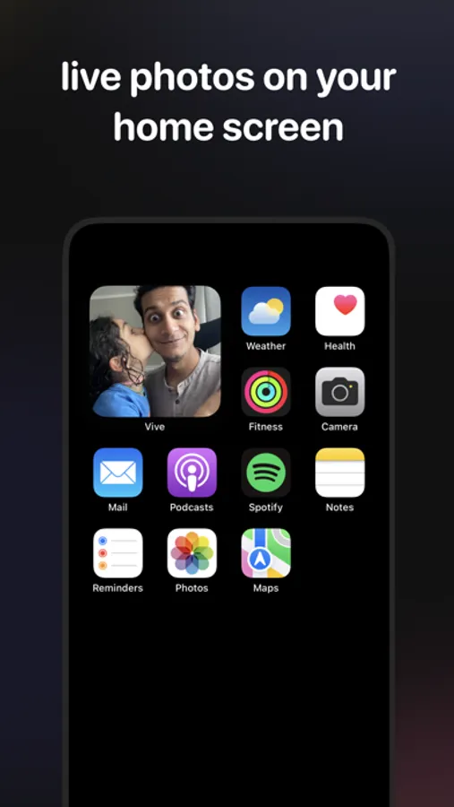 Add Live Photos from your friends and family to your home screen with Vive Widget. Vive is a window into your close friends lives.