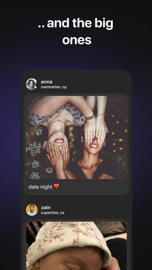 Share easily - We magically suggest photos that best capture your day or week (don't worry—you can always change them if you like).