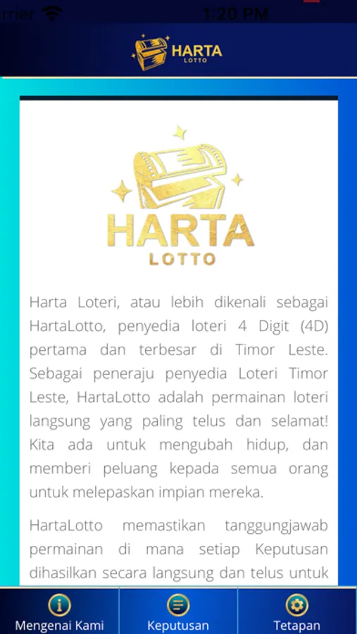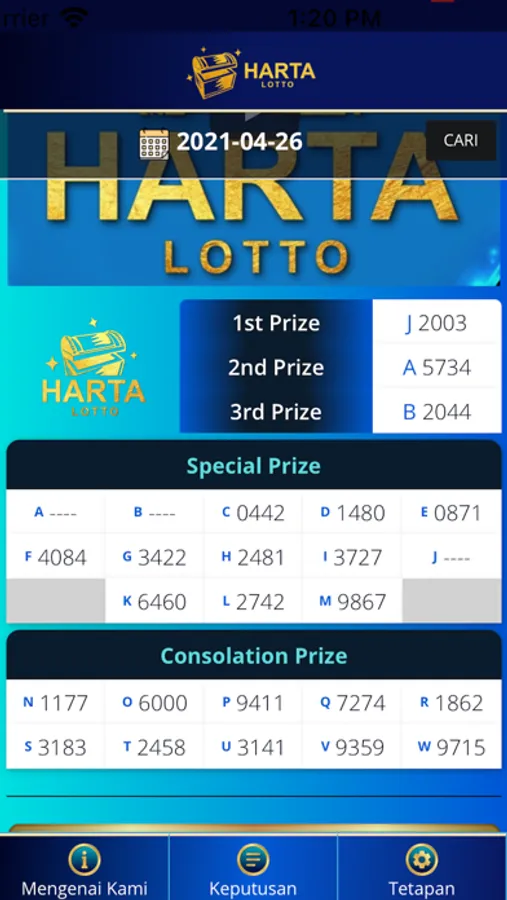 Pengguna boleh pakai App ini untuk tengok dan semak dan lebih mengenai harta lotto.