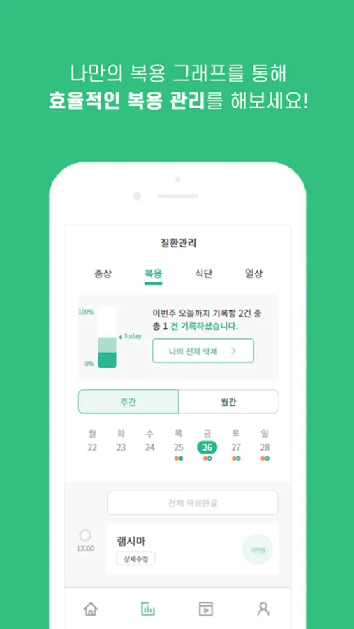 - 복용 기록에 따른 그래프를 보여주고 효율적인 복용 관리를 수행할 수 있습니다.