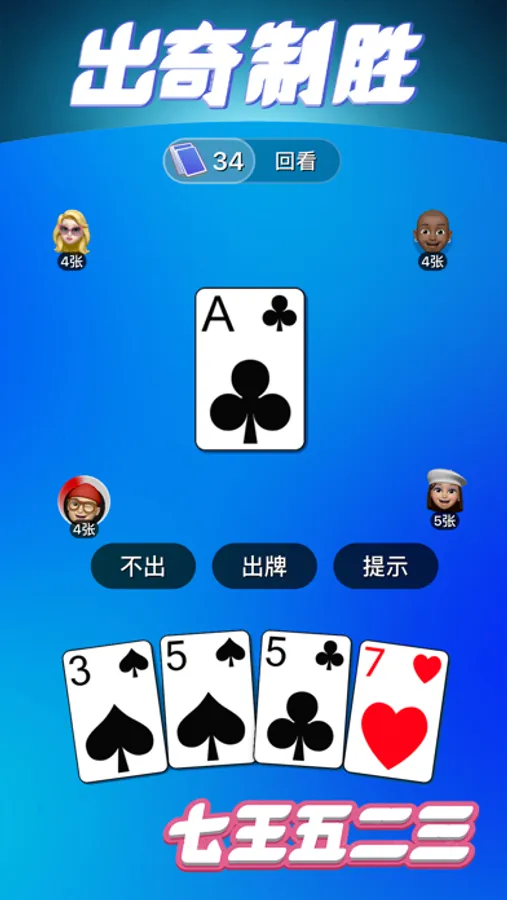 七王五二三又叫七鬼五二三或七毛五二三,是一种按逆时针顺序依次出牌的扑克游戏。玩法新奇独特,以及玩牌人数比较随意,深受广大玩家的喜爱,从而迅速风靡全国。游戏支持2-4人都能玩,打牌过程中,你的牌局命运变化多样!让我们赶紧来看看游戏的玩法吧。