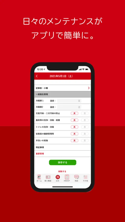 ・厨房機器のセルフメンテナンスの記録・履歴・自動通知設定