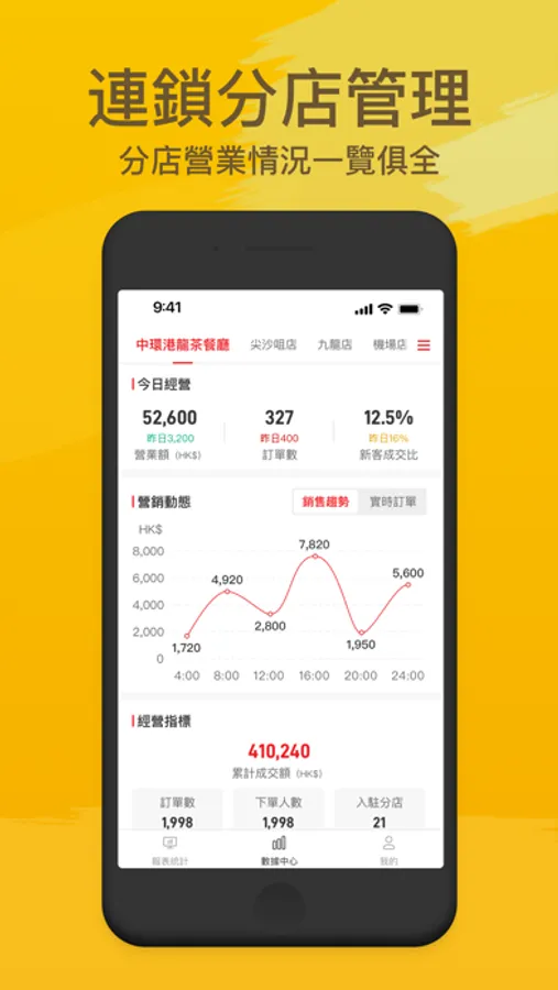 顯示店舖的生意額,生意賺蝕一目了然。