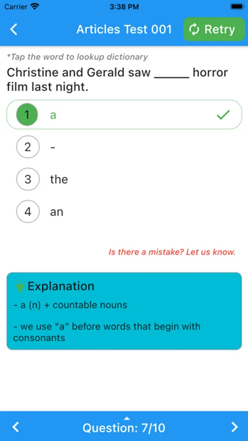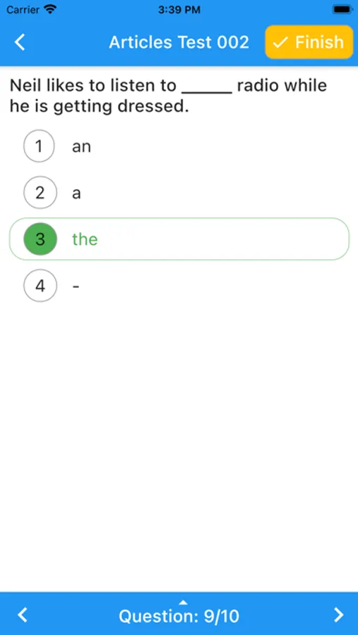 Our language app is the best way to study English and to practice English. Stunning minimalist design and clear user interface make it easy to test your grammar skills.