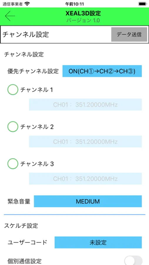 登録局戸別受信機XEAL3Dのチャンネル登録や機能設定ができます。接続ケーブルは不要、スマホから音でデータ転送するのですぐに使えます。アプリの説明書はアルインコ電子事業部のXEAL3D製品紹介ページでダウンロードできます。このアプリは、個人情報収集やスマホの別の機能へのアクセスは一切行いません。