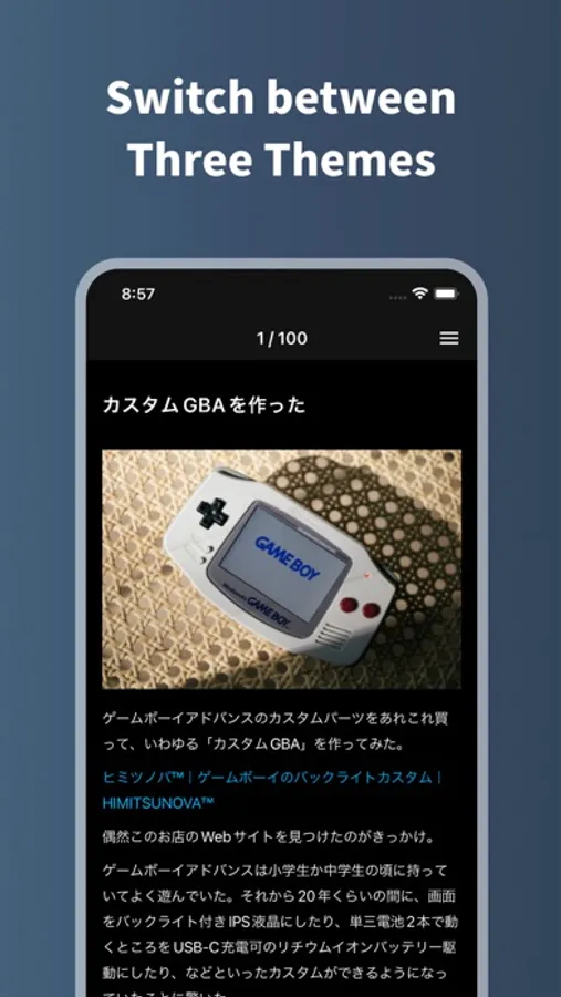 - UI theme can be changed from 3 types: light / Tumblr / black (You can also switch themes automatically according to your device settings)