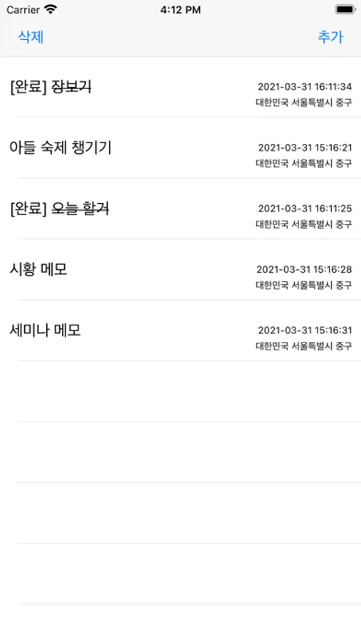 메모앱의 꼭 필요한 단순 기본 기능만 구현하였습니다.