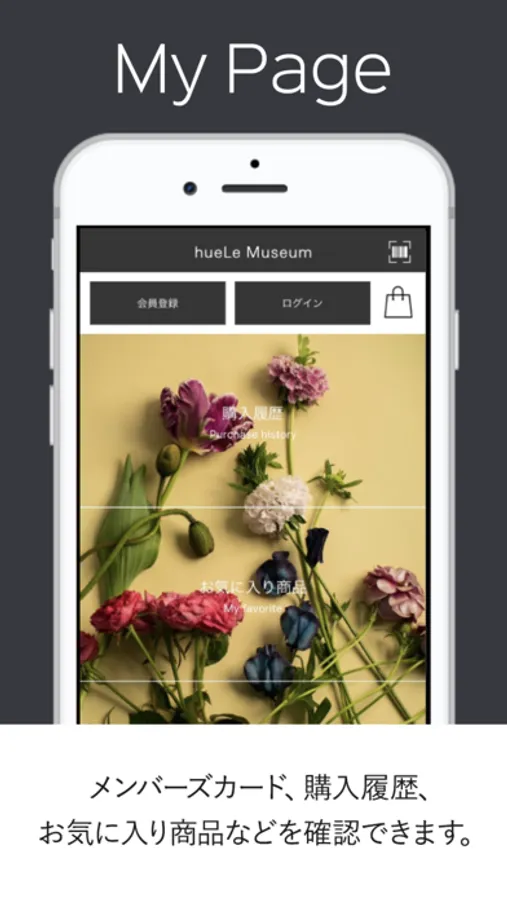 メンバーズカード、購入履歴、お気に入り商品などを簡単に確認することができます。