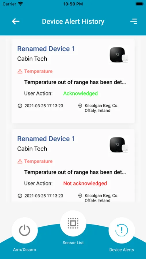 The Cabin-Tech app allows you remote monitoring of your Cabin-Tech devices. Keep an eye on your remote tower site without having to drive up the mountain and through the snow. Know who’s in your hotel room and, more importantly, what they are doing while you are in a business meeting or out seeing the sights by enabling picture capture of motion events.