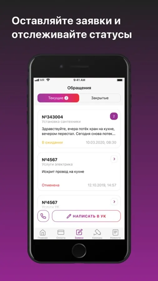 • оставляйте заявки, отслеживайте статус и оценивайте качество исполнения;